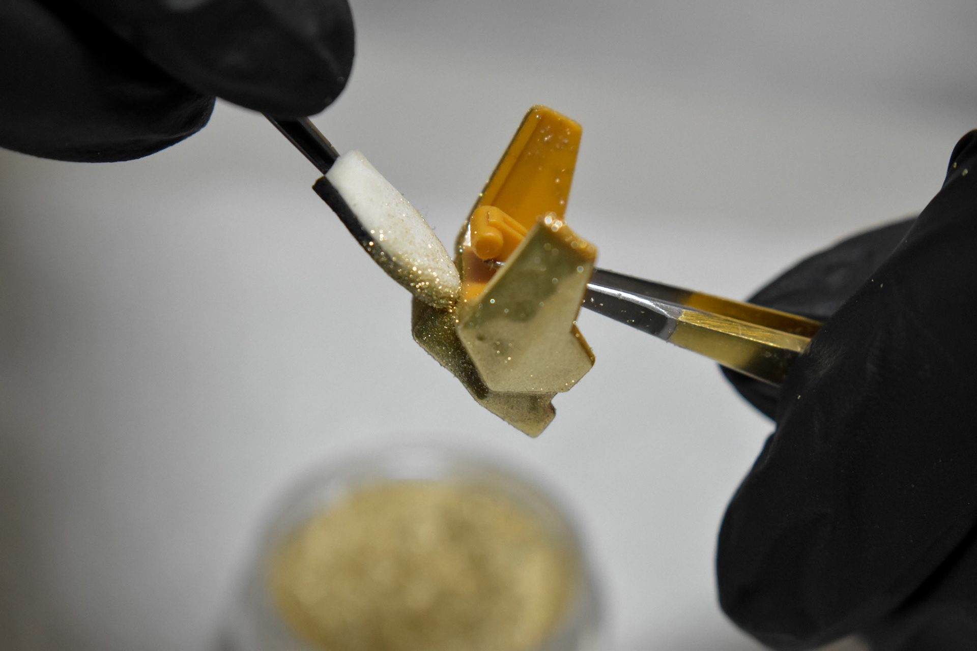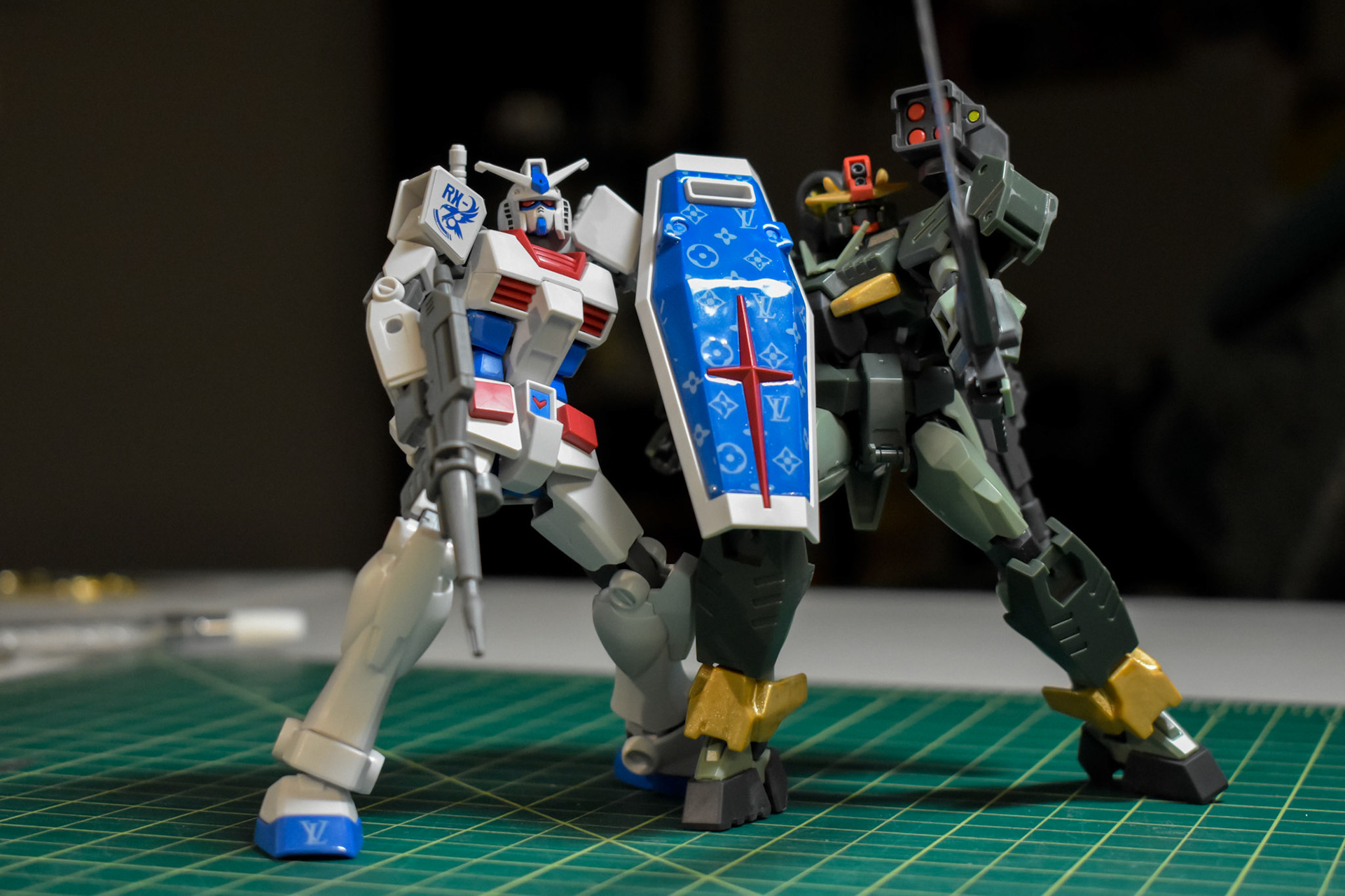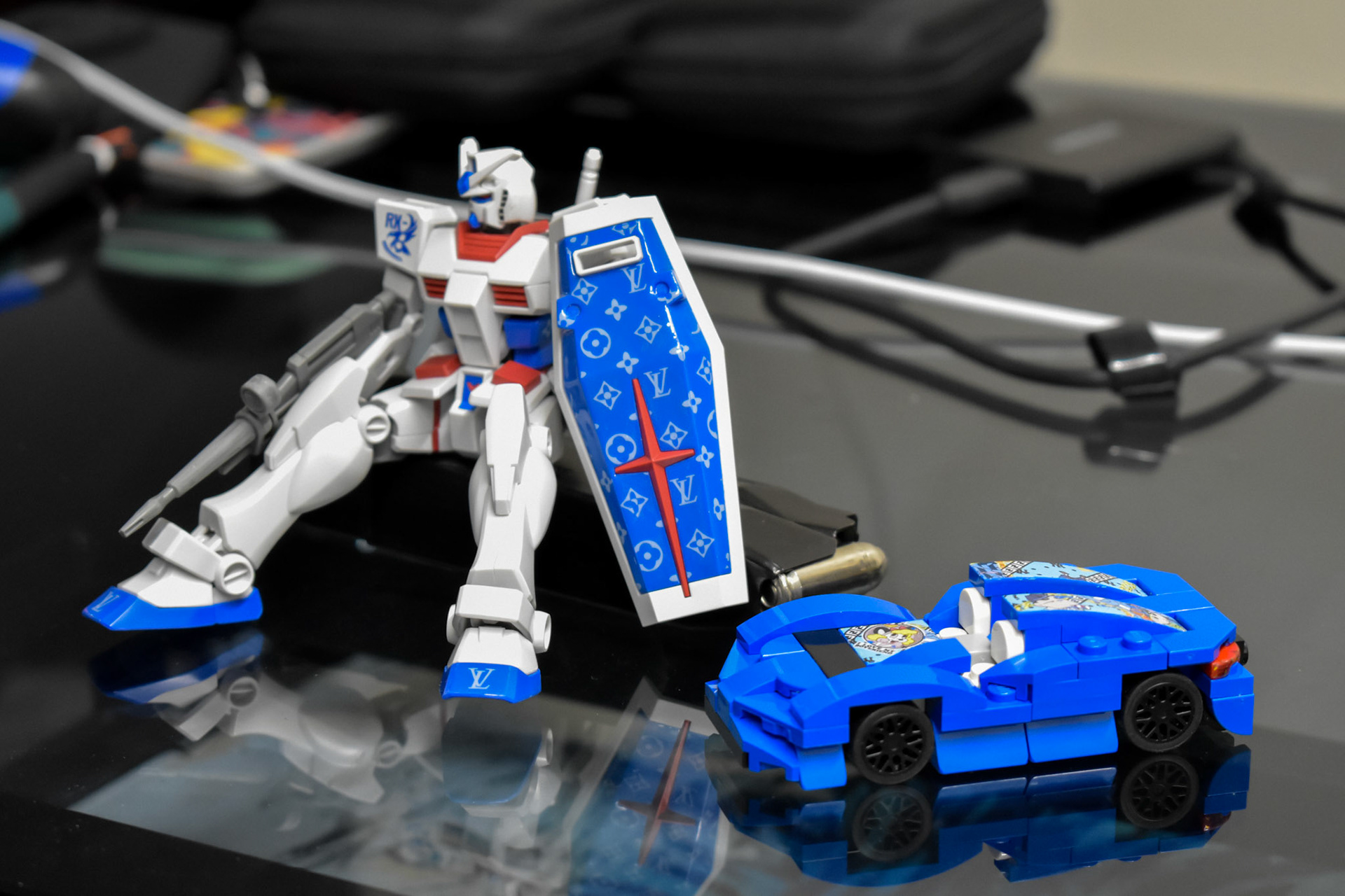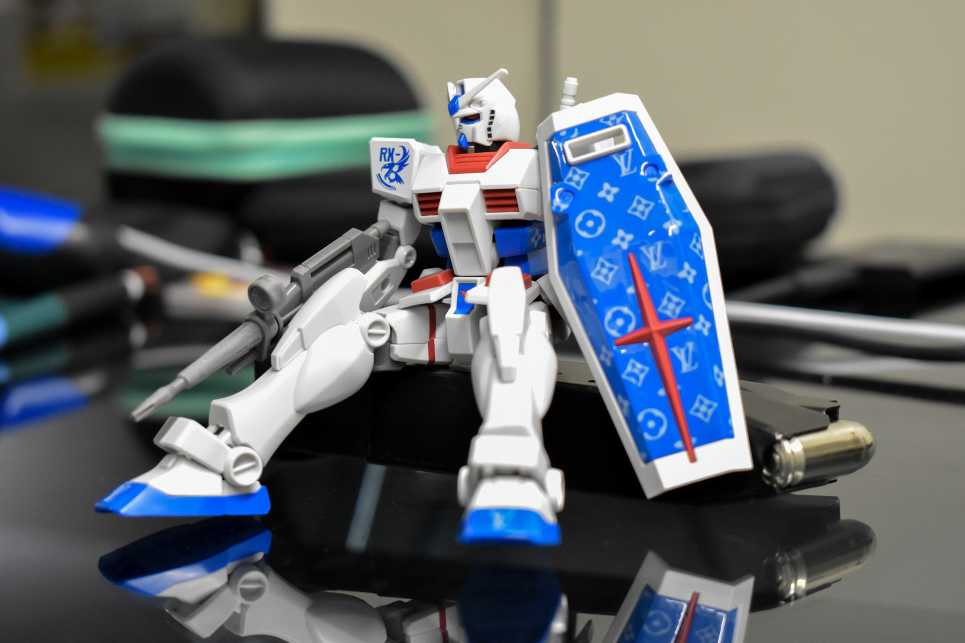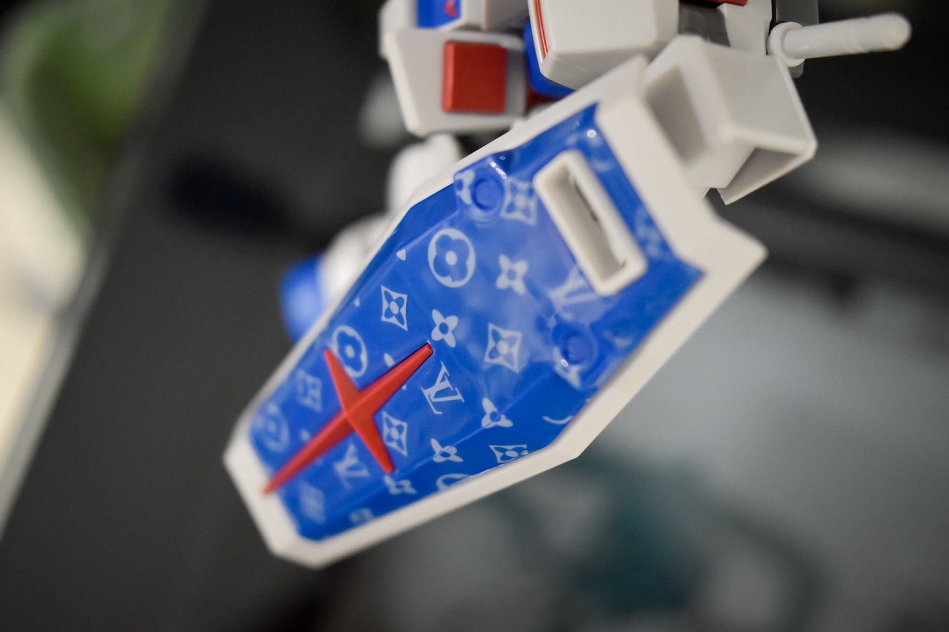 collaboration with majnailz to imprint a custom louis vuitton gundam using nail art stamping techniques